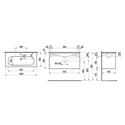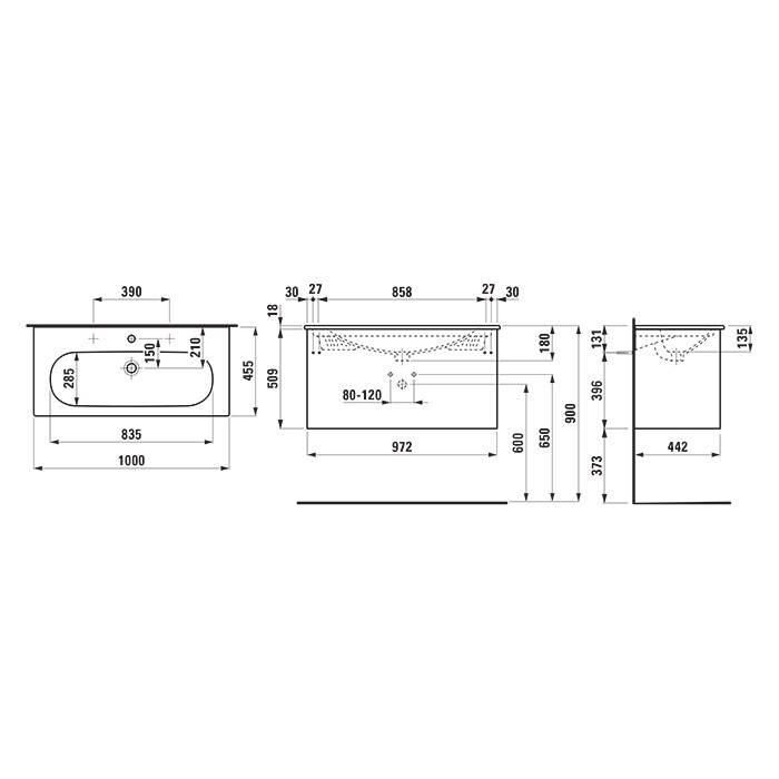 Lua 100см, модуль с раковиной, подвесной монтаж, арт. 8.6008.8.260.104.1, Laufen