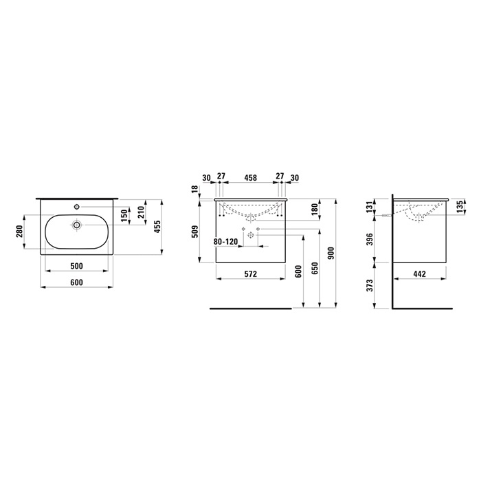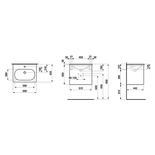 Lua 60см, модуль с раковиной, подвесной монтаж, арт. 8.6008.3.260.104.1, Laufen