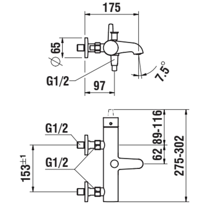 Настенный смеситель Val неповоротный излив, лейка в комплекте