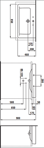 Pro S 85х46,5х9,5см, подвесная раковина, санфарфор, с 1 отверстием для смесителя, арт. 8.1696.5.000.104.1, Laufen