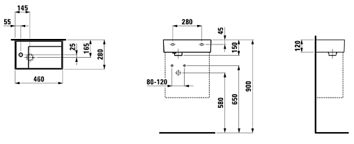 Без отверстия перелива, с 1 отверстием для смесителя слева