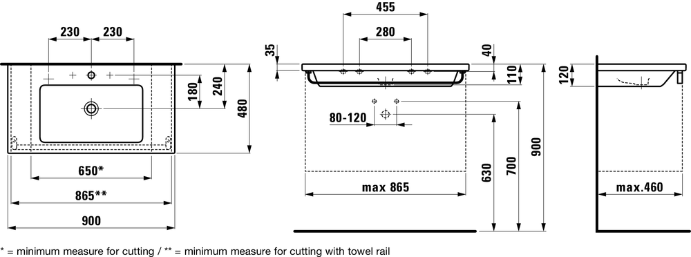 Living 90 х 48 х 12 см, раковина, с 3 отверстиями для смесителя, арт 8.1643.3.000.108.1, Laufen