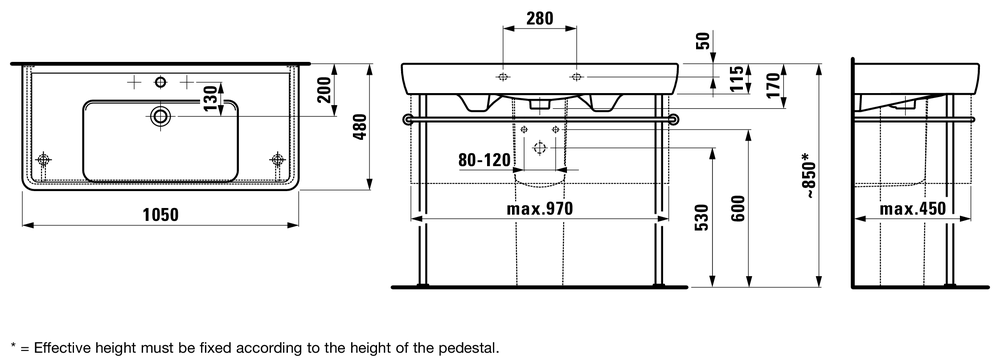 Pro A 105х48х11,5см, подвесная раковина, санфарфор, с покрытием lcc, с отверстием, арт. 8.1395.8.400.104.1, Laufen
