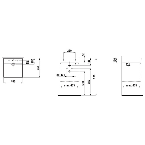 Подвесная раковина Kartell by laufen 46х46х12 см, без перелива, санфарфор, с отв. под смеситель
