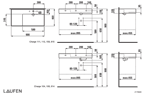 Kartell by laufen 90х46х12см, подвесная раковина, SaphirKeramik, отверстие для смесителя, без перелива, арт. 8.1033.9.000.111.1, Laufen