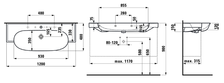 The New Classic 120х48х15см, подвесная раковина, SaphirKeramik, белый матовый, арт. 8.1385.8.757.115.1, Laufen