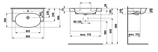 The New Classic 80х48х16,5см, подвесная раковина, SaphirKeramik, с 1 отверстием для смесителя и перелива,с покрытием lcc, арт. 8.1385.5.400.104.1, Lau