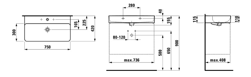 Val 75х42х11,5см, подвесная раковина, SaphirKeramik, с 1 отверстием для смесителя, с покрытием lcc, арт. 8.1028.5.400.104.1, Laufen