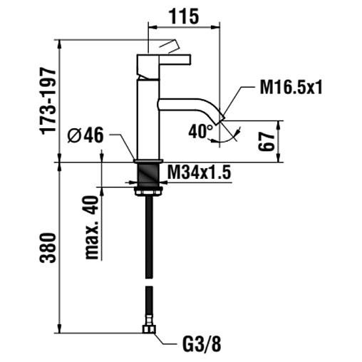 Смеситель для умывальника Kartell by laufen матовый, высота до излива 6,7см, неповоротный излив, чёрный цвет, без донного клапана