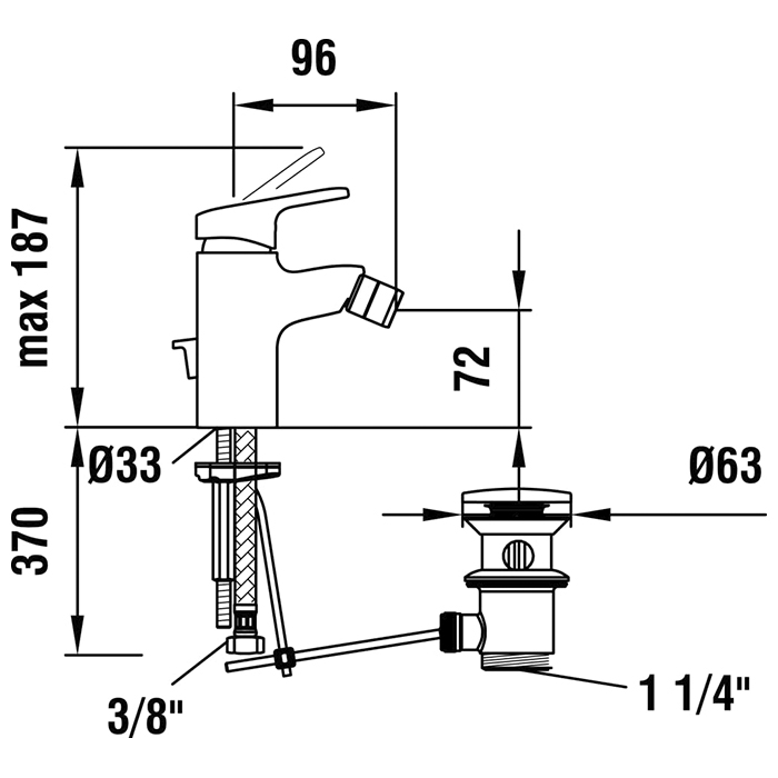 Смеситель для биде Citypro высота до излива 7,2 см, с донным клапаном