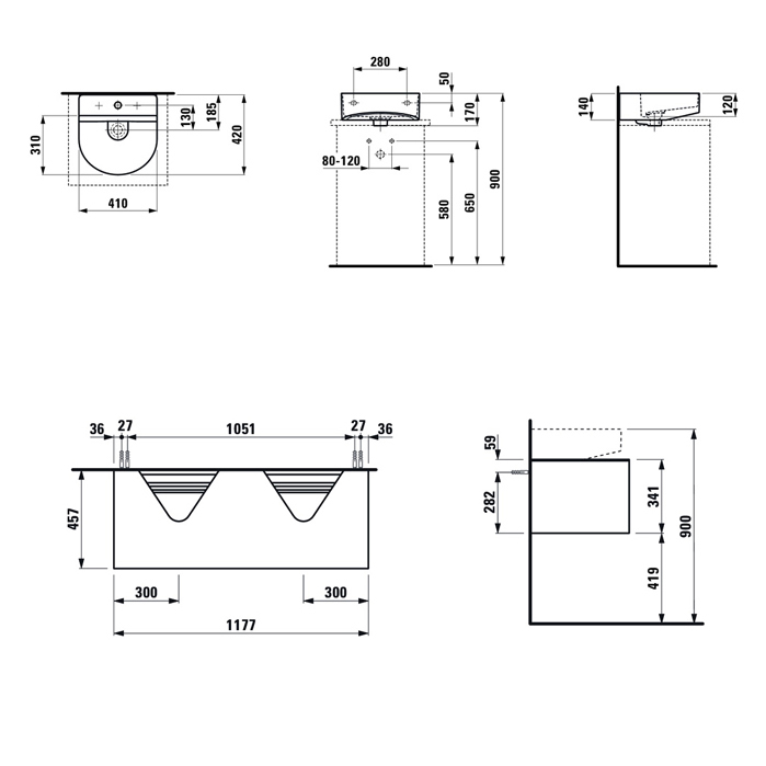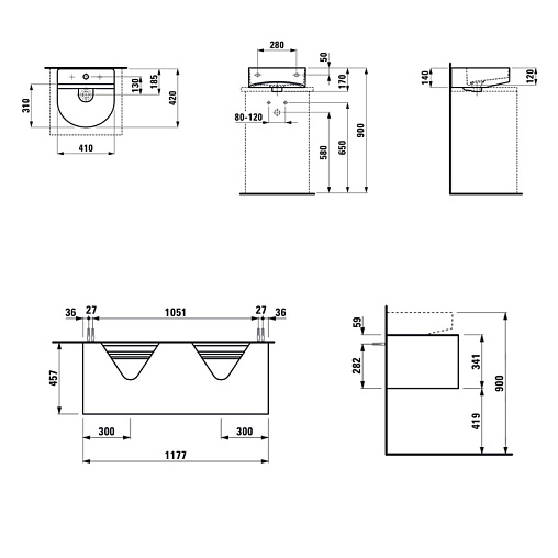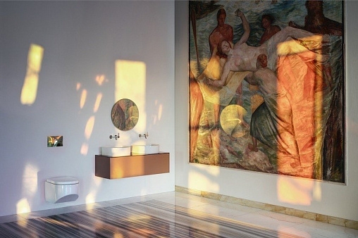 Sonar 117,7х45,7х34,1см, модуль под раковину, система push-to-open, для 2 раковин, золото/столешница черный мрамор, арт. 4.0545.4.034.140.1, Laufen